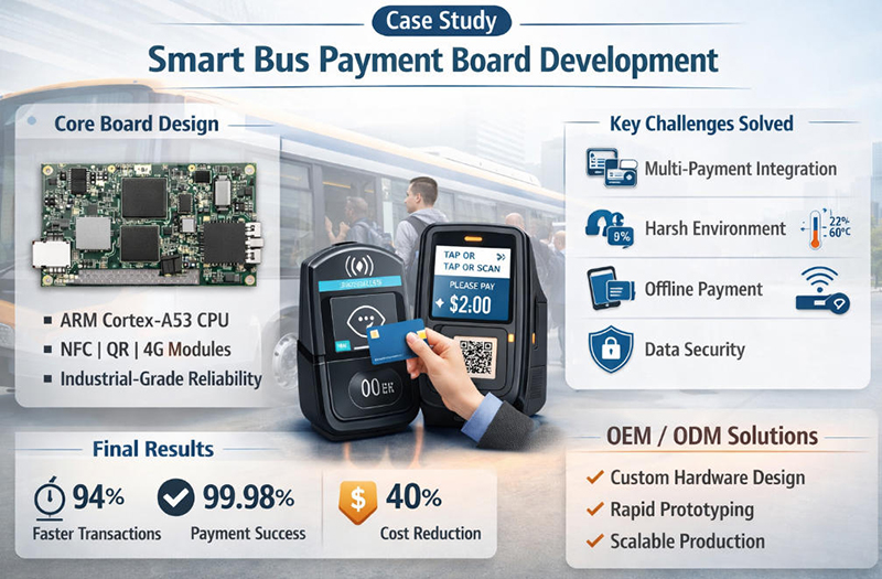 This project demonstrates how a custom smart bus payment core board can transform traditional fare collection systems into a modern, efficient, and scalable solution.